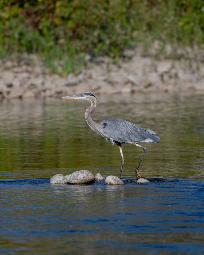 I went for a walk the day after my tennis class, and as I was walking through the wooded nature area near my house, I saw a a Great Blue Heron wading in the creek. I stopped to watch this beautiful bird moving gently through the water. I noticed just how slowly it moved, barely making a ripple in the water as it glided forward. It moved so slowly that I found it hard to watch. Even witnessing its glacial pace elicited a restlessness within me. I wanted to run, or shout. I felt itchy with the need to move faster than this bird. But I also had to laugh, because here it was again, another lesson in slowing down. Here was this regal bird moving through its environment with gentle ease, no doubt trying not to disturb any fish that may have been darting about at its feet. It looked so simple and so impossible at the same time.